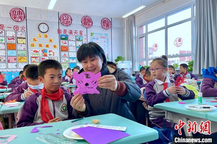 馬恒燕與學生共上剪紙課。 李佩珊 攝