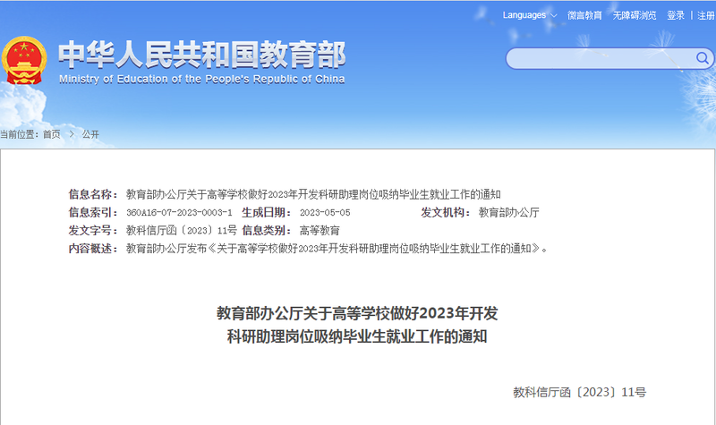 中國青年報(bào)客戶端北京5月9日電(中青報(bào)·中青網(wǎng)記者 葉雨婷)記者今天從教育部獲悉,教育部辦公廳發(fā)布“關(guān)于高等學(xué)校做好2023年開發(fā)科研助理崗位吸納畢業(yè)生就業(yè)工作的通知”指出,要加強(qiáng)組織領(lǐng)導(dǎo),統(tǒng)籌科研、人事、財(cái)務(wù)、就業(yè)等相關(guān)部門,充分挖掘資源和自身潛力,切實(shí)推進(jìn)開發(fā)科研助理崗位吸納2023屆高校畢業(yè)生就業(yè)工作。教育部將把科研助理崗位及實(shí)聘人數(shù)作為安排推薦免試攻讀研究生名額的重要參考因素。
