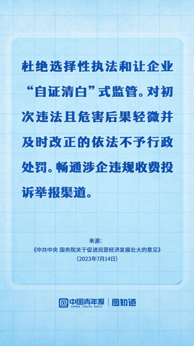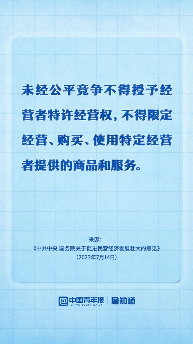 不得以備案、注冊等形式設定或變相設定準入障礙,未經(jīng)公平競爭不得授予經(jīng)營者特許經(jīng)營權(quán),杜絕選擇性執(zhí)法和讓企業(yè)“自證清白”式監(jiān)管,依法嚴厲打擊以負面輿情為要挾進行勒索等行為......中共中央、國務院近日印發(fā)《關(guān)于促進民營經(jīng)濟發(fā)展壯大的意見》,其中提到多個“不得”,共同了解