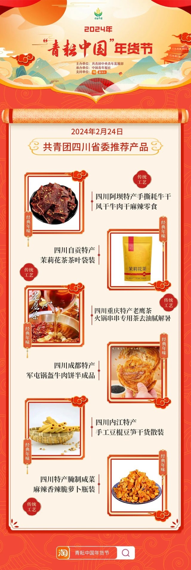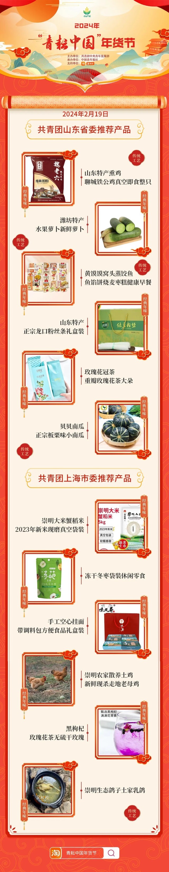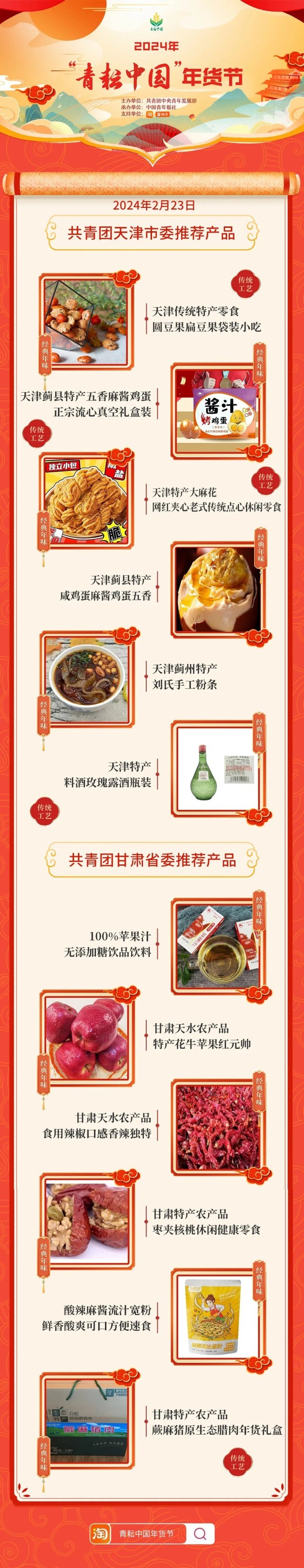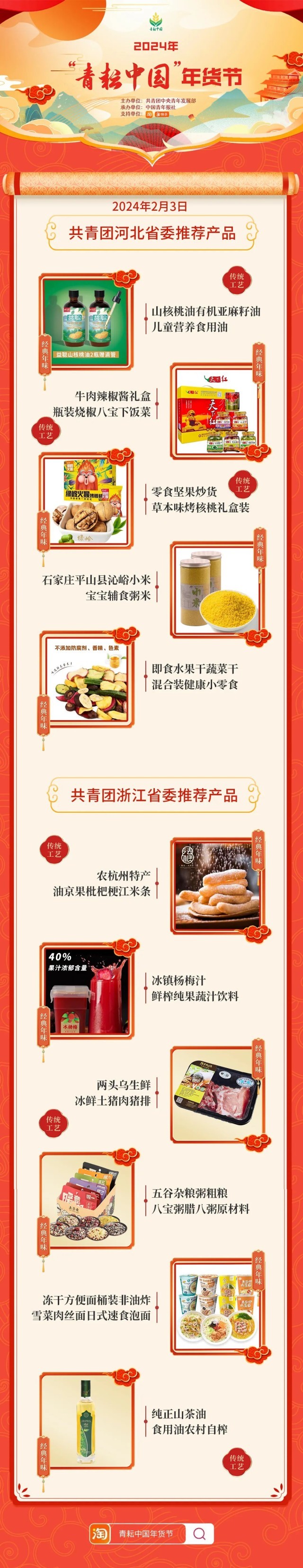 2024年“青耘中國”年貨節(jié)將于1月31日至2月24日,開展“一日兩省”主題日活動。用戶可在淘寶APP搜索“青耘中國年貨節(jié)”進(jìn)入專題頁選購產(chǎn)品。