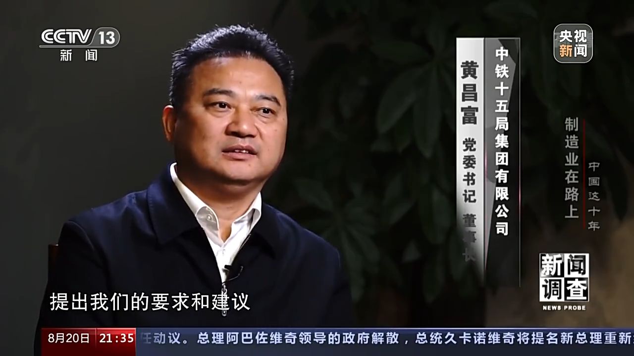 中鐵十五局集團有限公司黨委書記 董事長 黃昌富:比如說砂卵石地層,對這個刀具的磨損是非常厲害的,所以我們就給它這個刀具的配置要提出我們的要求和建議。