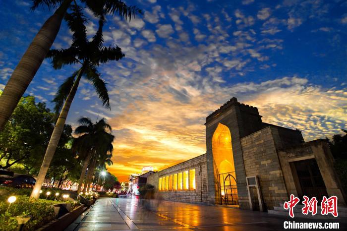 在古代海上絲綢之路的起點城市——福建泉州,當(dāng)落日余暉灑落于清凈寺前的廣場,披上霞裝的千年古寺散發(fā)出濃郁的異域風(fēng)情。