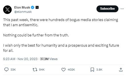 據(jù)報(bào)道,馬斯克在社交媒體平臺(tái)X上寫道,“過(guò)去一周,有數(shù)百個(gè)虛假的媒體報(bào)道聲稱我是反猶太主義者。事實(shí)并非如此。我只希望人類一切都好,所有人都有一個(gè)繁榮和令人興奮的未來(lái)?!?/p>