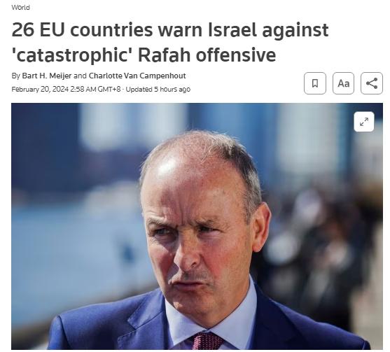 歐盟26國(guó)警告以色列不要進(jìn)攻拉法 呼吁立即?;?/h2>
