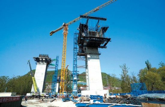國道109新線高速陳家莊特大橋加緊施工。本報記者 程功攝