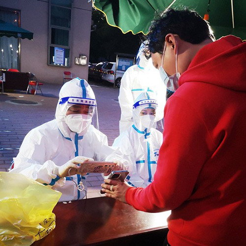 “第一次穿上‘大白服’有點不適應(yīng),從早到晚不停呼喊,白班夜班交替,有時飯來不及吃。當有人對我說謝謝‘大白’時,我特別開心?!奔紟煂W院志愿者劉許說?!拔逡弧奔倨?,北京電控50名下沉干部承擔所在核酸檢測點維持秩序、衛(wèi)生消殺、身份證登記等工作。他們說:“我們度過了一個不同尋常的‘五一’,這個勞動節(jié)過得特別有意義?!?/p>
