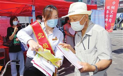 7月13日上午,天津市和平區(qū)濱江道樂賓百貨門前,市第十二次黨代會精神宣講展位彩旗招展,群眾絡繹不絕。來自衛(wèi)健、科技、政法、交通、公共服務、社會組織等方面50多個各級各類的為民服務窗口型“巾幗文明崗”“巾幗建功先進集體”志愿者齊聚,以學習宣傳貫徹市第十二次黨代會精神暨“迎盛會、鑄忠誠、強擔當、創(chuàng)業(yè)績”巾幗文明崗為群眾服務活動為主題,開展多項便民服務。