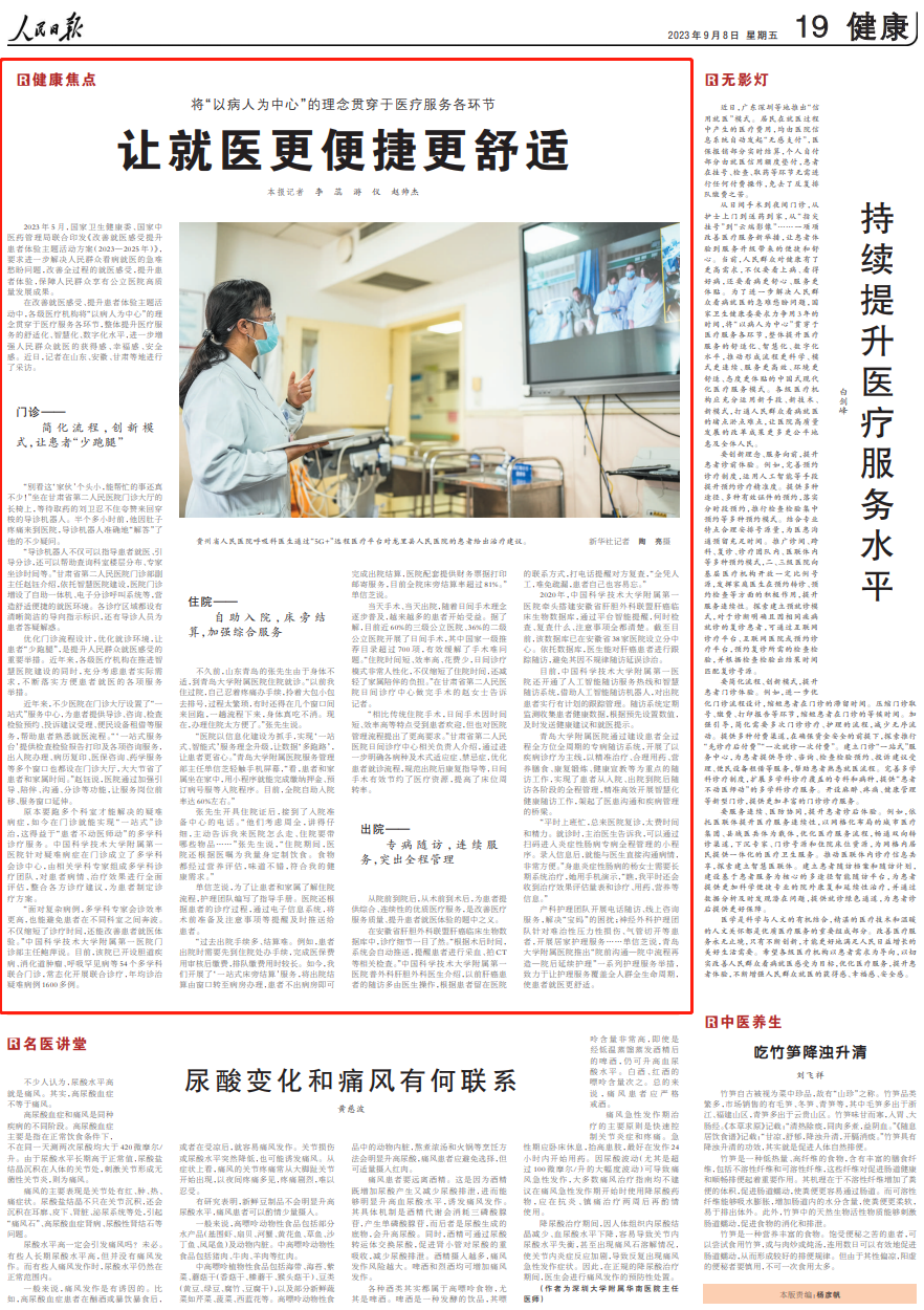 人民日報聚焦山東等地醫(yī)療機(jī)構(gòu):改善就醫(yī)感受 提升患者體驗