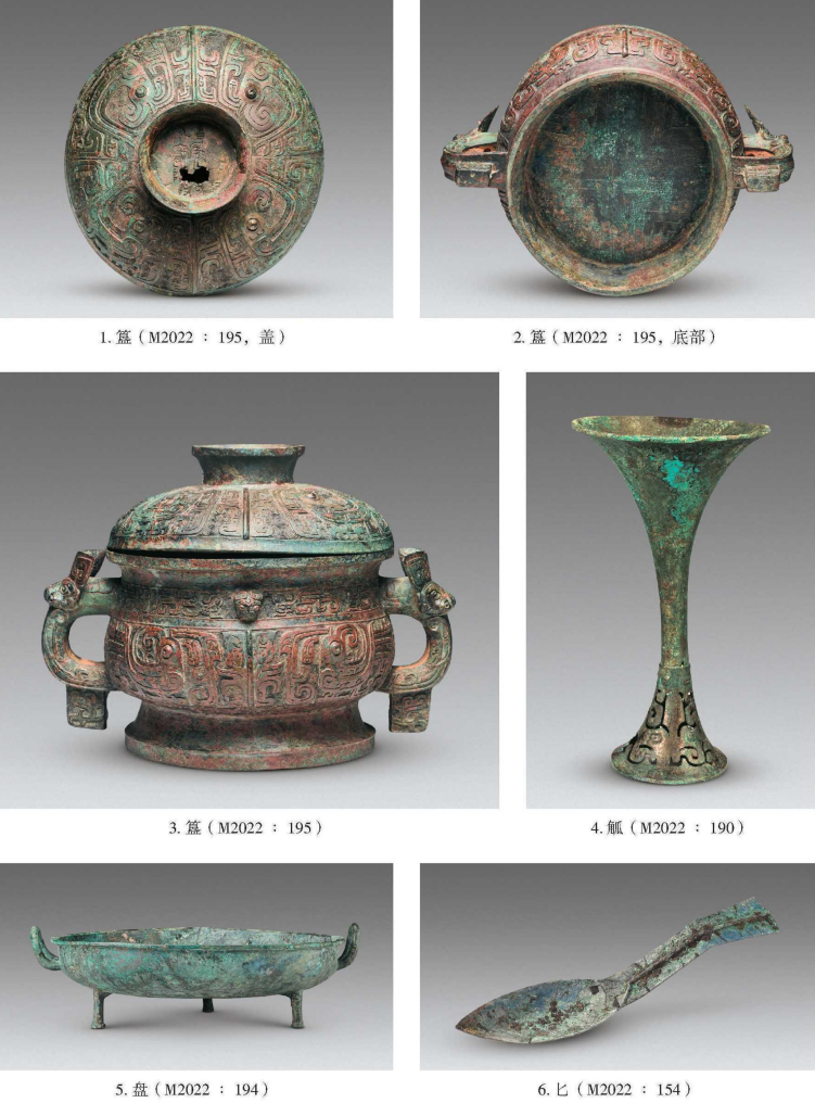 此次公布考古資料的墓葬為M2022墓,該墓葬墓室較大,且東側對應陪葬一座較大的車馬坑。墓內隨葬器物種類豐富,數(shù)量較多,包括青銅器1045件(套)、玉器60件(套),其中青銅禮、樂器16件,且發(fā)現(xiàn)殉人和殉狗,顯示墓主人具有較高的社會地位。