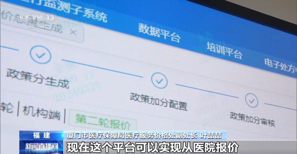 廈門市醫(yī)療保障局局長 花育明:減下來的錢用來保障到能夠體現(xiàn)醫(yī)務(wù)人員的技術(shù)勞動價值的這些項目上,優(yōu)化了我們的價格結(jié)構(gòu),促進了公立醫(yī)療機構(gòu)高質(zhì)量發(fā)展。