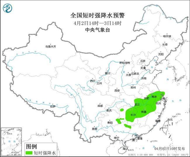預(yù)計(jì),4月2日14時至3日14時,湖北東南部、安徽中南部、江蘇南部、上海、湖南、江西中北部、浙江西部和北部等地部分地區(qū)有大到暴雨,其中,江西北部等地局地有大暴雨(100~150毫米)。上述部分地區(qū)伴有短時強(qiáng)降水(最大小時降雨量30~50毫米,局地可超過70毫米),局地有雷暴大風(fēng)或冰雹等強(qiáng)對流天氣。
