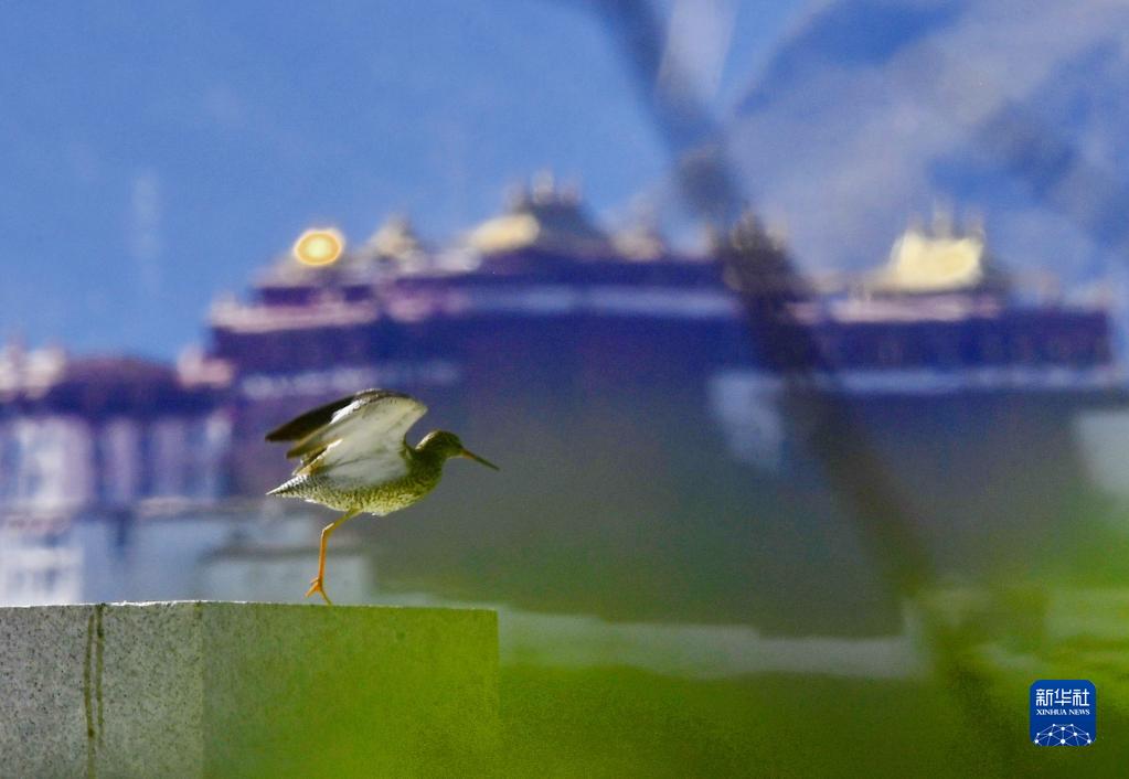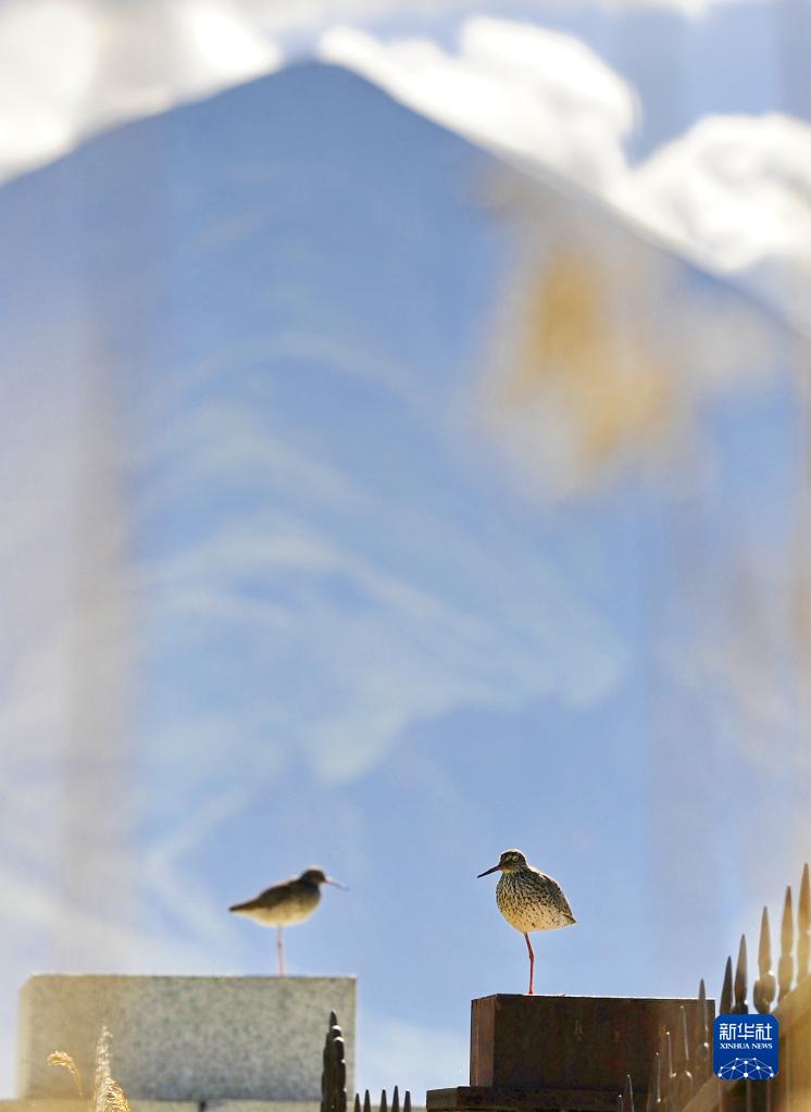 6月21日在拉魯濕地拍攝的紅腳鷸。新華社記者 張汝鋒 攝