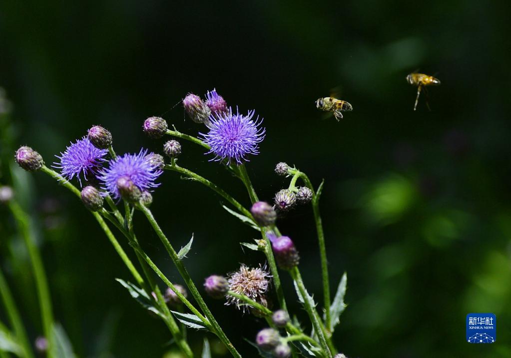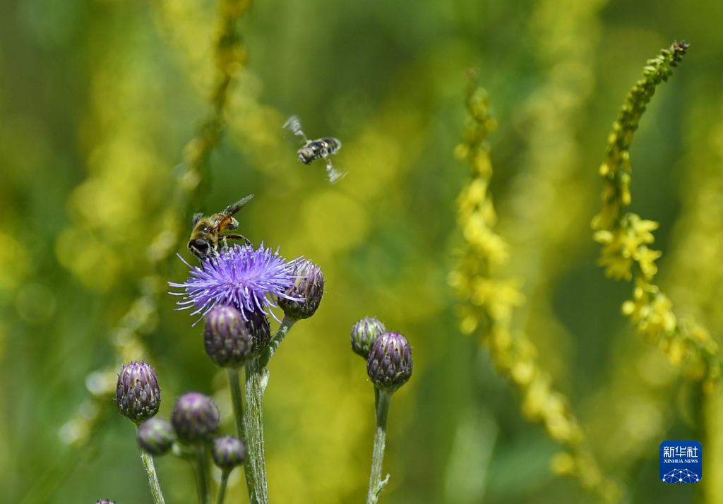 蜜蜂在拉魯濕地的花叢間(6月21日攝)。新華社記者 張汝鋒 攝