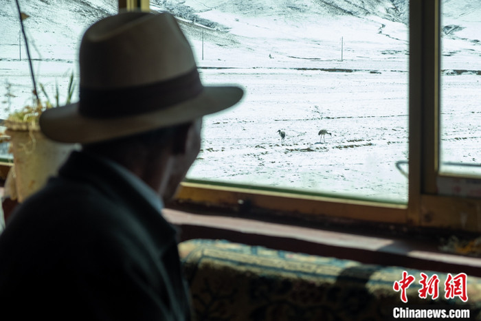 圖為2月23日,旦增在林周縣虎頭山水庫(kù)附近為黑頸鶴巡護(hù),今年,該水庫(kù)周邊有上千只黑頸鶴在此越冬。 中新社記者 江飛波 攝