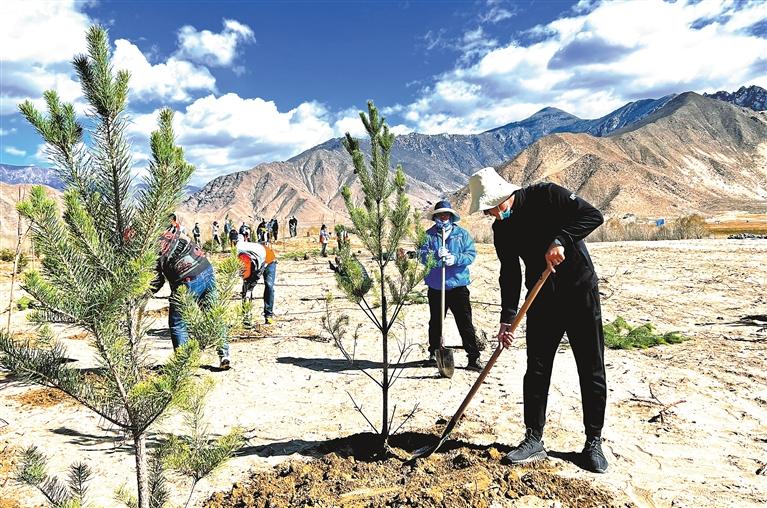 圖為扎囊縣義務植樹活動現(xiàn)場。記者 段敏 攝