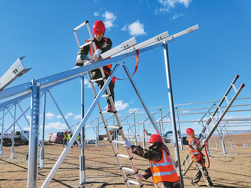 “這些光伏支架的基礎(chǔ)樁看著不起眼,卻是光伏板的‘脊梁’,每根承重超過25公斤?!毖诺a江流域水電開發(fā)有限公司柯拉光伏項目部經(jīng)理楊志偉介紹,目前已累計完成打樁近20萬根。