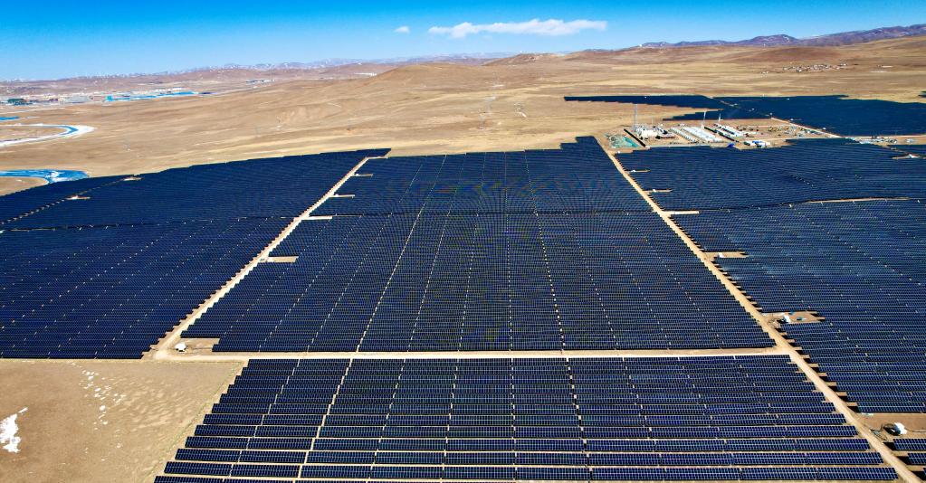 西藏華電那曲色尼區(qū)12萬(wàn)千瓦光伏發(fā)電電力保供項(xiàng)目全景。新華社記者劉洪明 攝