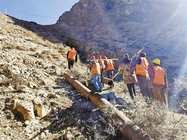 圖為中鐵二十一局工人在巴嘎雪片區(qū)將主鋼管轉(zhuǎn)運至焊接點位。記者 楊小娟 攝