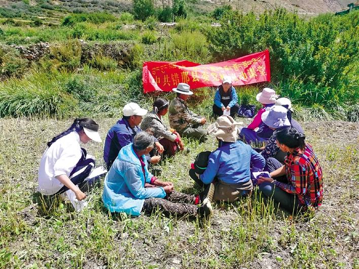 圖為西藏山南市錯那縣委組織部部務(wù)會成員深入田間地頭對農(nóng)牧民黨員開展黨課教育。次仁片多 索朗瓊珠 通訊員 李蒙 攝