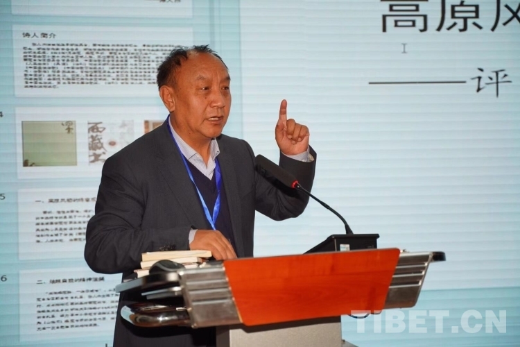 圖為西藏文藝評(píng)論家協(xié)會(huì)秘書(shū)長(zhǎng)李洪川作主題發(fā)言
