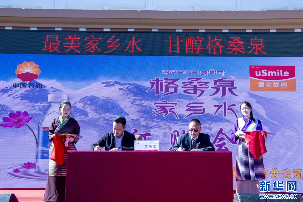 11月15日,“家鄉(xiāng)水·格桑泉”訂購(gòu)會(huì)現(xiàn)場(chǎng)合作單位雙方進(jìn)行簽約。新華網(wǎng) 旦增努布 攝