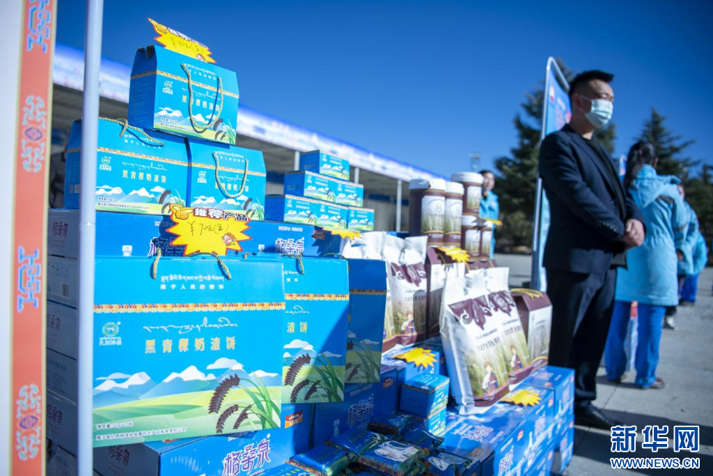 11月15日,“家鄉(xiāng)水·格桑泉”訂購(gòu)會(huì)特色產(chǎn)品展區(qū)。新華網(wǎng) 旦增努布 攝