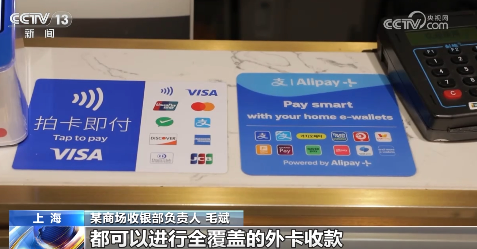 某商場(chǎng)收銀部負(fù)責(zé)人毛斌稱(chēng):“外國(guó)顧客到我們商場(chǎng)購(gòu)物越來(lái)越多了,所以我們針對(duì)外國(guó)顧客的付款方式進(jìn)行了收銀方面的調(diào)整改進(jìn),目前商場(chǎng)所有的收銀設(shè)備都可以進(jìn)行全覆蓋的外卡收款?!?/p>