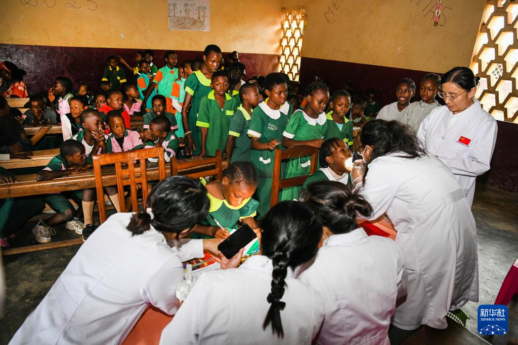 中國(山西)第24批援喀麥隆醫(yī)療隊姆巴爾馬約分隊3日在姆巴爾馬約市一所小學開展義診活動,為當地學生和教職員工提供口腔檢查、健康咨詢及疾病預防宣教服務。
