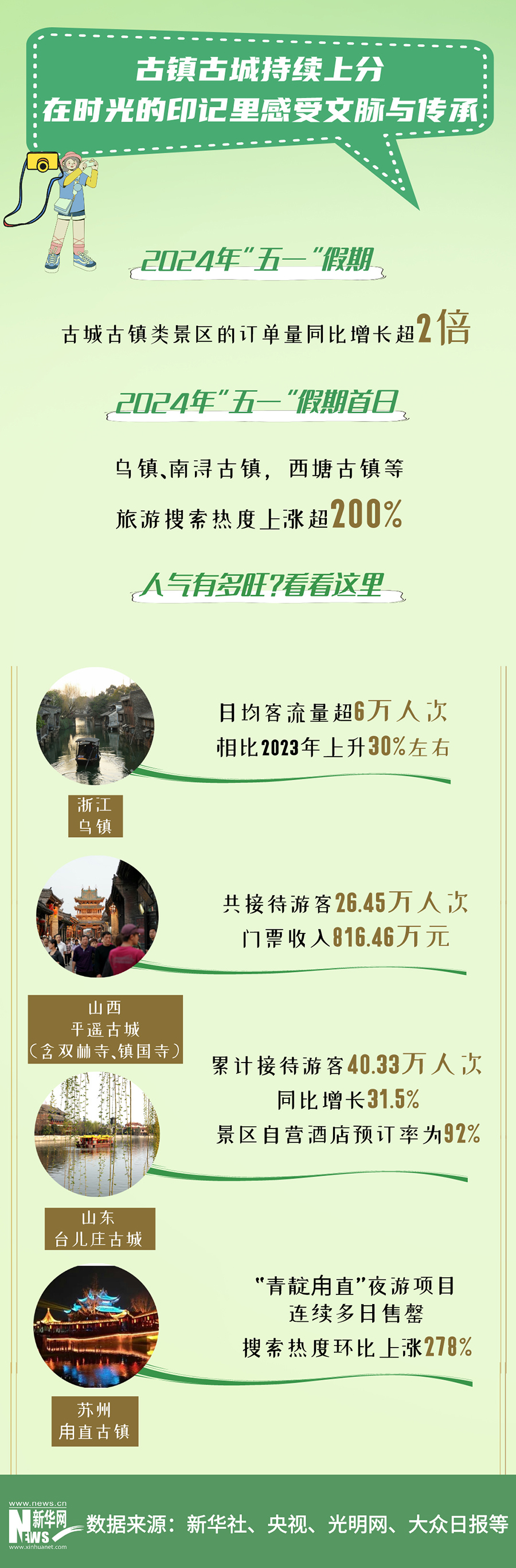 這個(gè)“五一”假期,麗江古城、江南烏鎮(zhèn)、漳州古城、平遙古城、甪直古鎮(zhèn)、喀什古城、南潯古城......這些地標(biāo)里,既有我們熟悉的名字,也多了不少新晉名錄。古鎮(zhèn)古城的熱度,還在繼續(xù)。