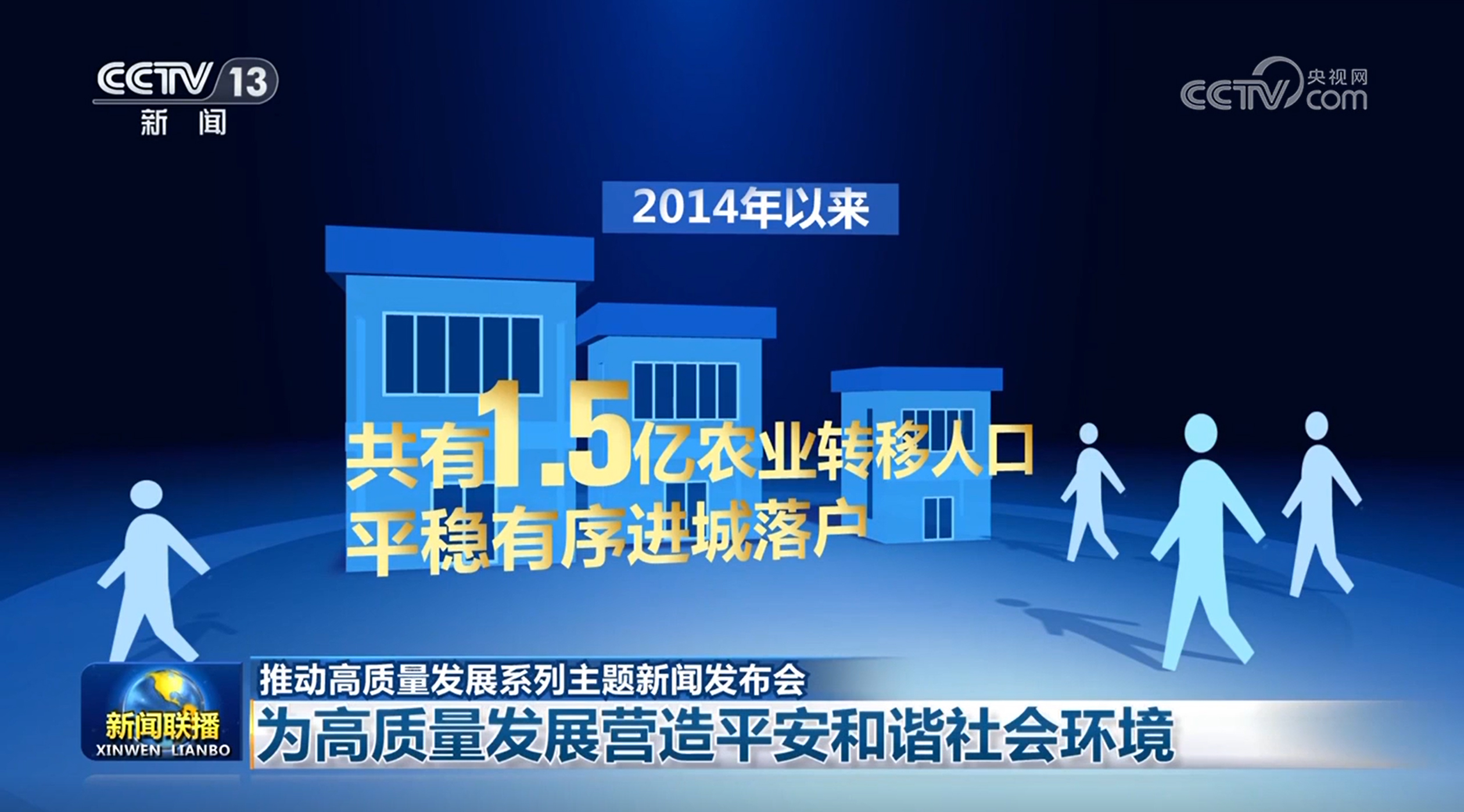 近年來(lái),公安機(jī)關(guān)有序推進(jìn)農(nóng)業(yè)轉(zhuǎn)移人口市民化。2014年以來(lái),共有1.5億農(nóng)業(yè)轉(zhuǎn)移人口平穩(wěn)有序進(jìn)城落戶,全國(guó)戶籍人口城鎮(zhèn)化率由2014年的35.9%提高到2023年的48.3%。