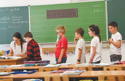 匈中雙語(yǔ)學(xué)校教師正在批改作業(yè)。本報(bào)記者 劉仲華攝