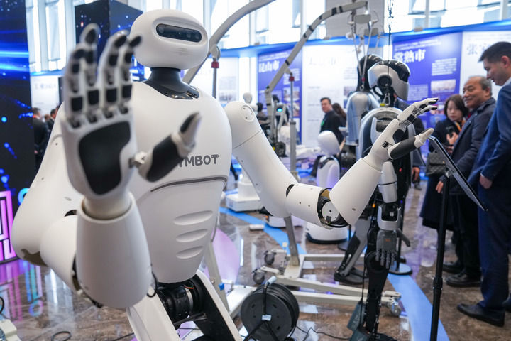2025年2月14日在2025年蘇州市“人工智能+”創(chuàng)新發(fā)展推進(jìn)大會暨人工智能賦能新型工業(yè)化深度行(蘇州站)活動現(xiàn)場拍攝的人形機器人。新華社記者 李博 攝
