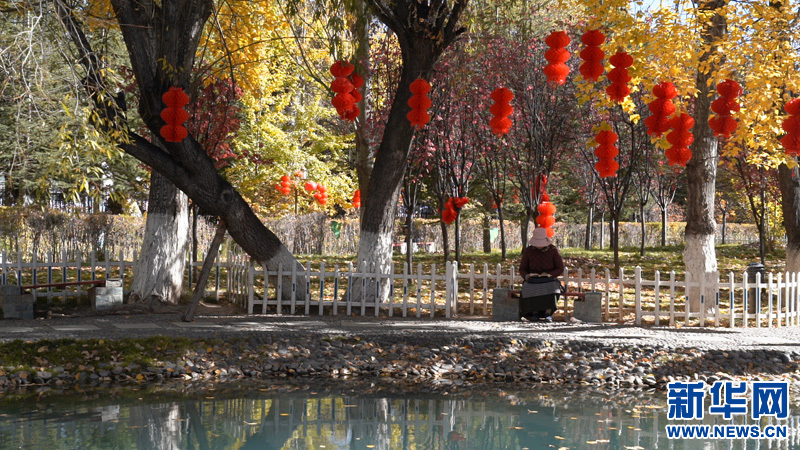 金秋的宗角祿康公園景致別有一番滋味:藍天、碧水與遠處的雪山交相輝映,一切仿佛是畫家手中的調色盤,美的恰到好處。