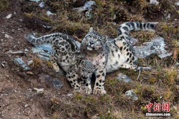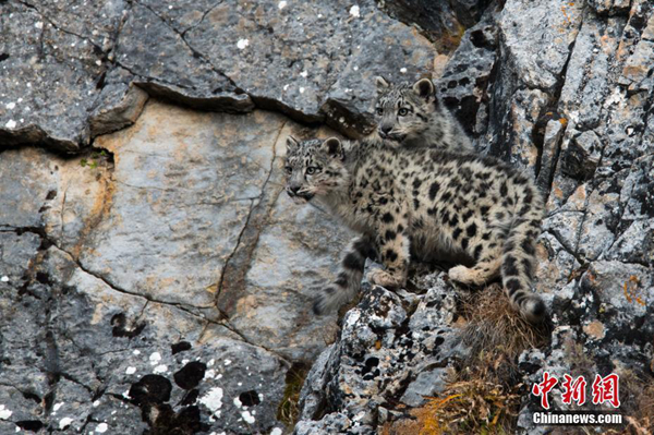 2017年祁連山青海側(cè)捕獲251次雪豹影像,此前這一區(qū)域雪豹分布及種群數(shù)據(jù)空白。本次雪豹監(jiān)測是祁連山系青海境內(nèi)及祁連山國家公園(青海片區(qū))內(nèi)開展的首次大規(guī)模野生動(dòng)物監(jiān)測工作,安裝布設(shè)紅外相機(jī)154臺(tái)中,37臺(tái)相機(jī)記錄到雪豹照片及視頻251條。圖為小雪豹“寫真”照“萌化人心”。