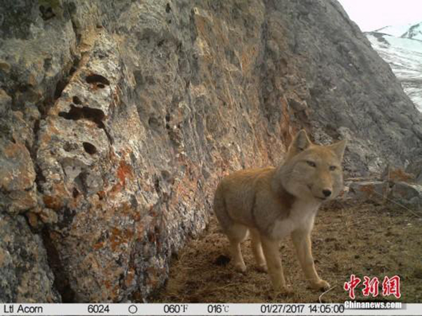 今年1月份,青海省雜多縣與山水自然保護(hù)中心聯(lián)合開展的生物多樣性監(jiān)測中,紅外相機(jī)捕捉到一組“大方臉”藏狐“自拍照”。以“迷之微笑”著稱的藏狐,分布海拔三四千米的高原地帶,作為青藏高原特有種,通?!皬?qiáng)占”旱獺洞穴以“家庭”為單位居住。圖為監(jiān)測到的藏狐影像。