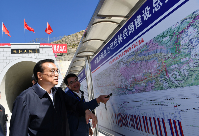 圖為李克強(qiáng)總理7月26日考察川藏鐵路拉林段施工現(xiàn)場(chǎng)。圖片來(lái)源:中國(guó)政府網(wǎng)