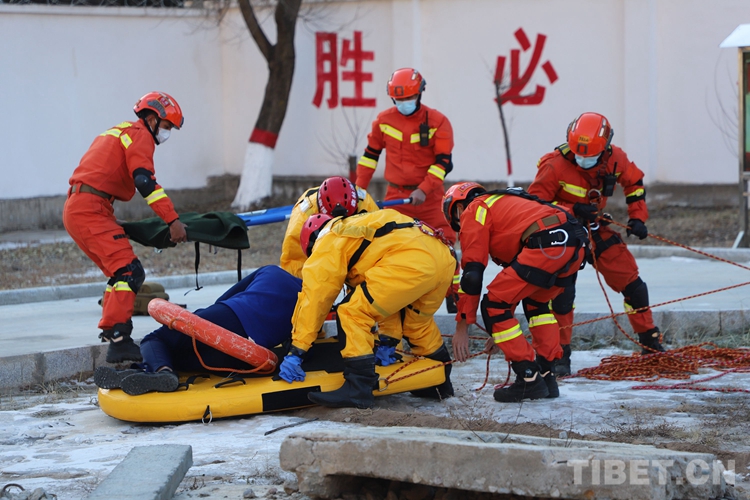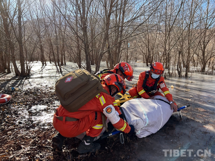 訓(xùn)練前,貢覺縣駐防分隊堅持從實戰(zhàn)出發(fā),提前設(shè)置規(guī)劃冰面落水救援地點。到達指定位置后,全體指戰(zhàn)員快速反應(yīng),在確保安全的前提下,救援人員采取攜裝匍匐前進的方式,有條不紊地操作擔(dān)架與救生圈,救助墜入冰下的遇險人員。安全員及時提醒救助人員冰上隨時可能發(fā)生的突發(fā)狀況。其余人員在受力地點制作錨點進行安全輔助。被救人員到達安全區(qū)域后,醫(yī)療救護組及時對被救人員做好防寒保暖工作,針對被救人員傷情采取有效急救措施。