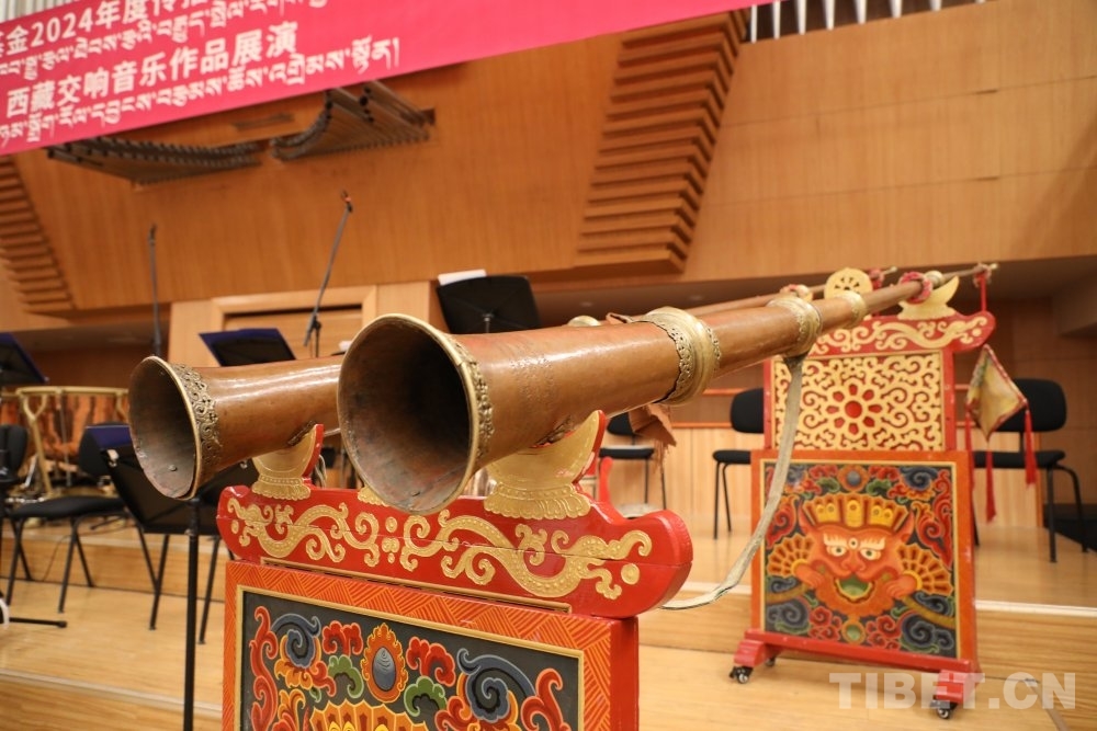 演出展示了合奏、協(xié)奏、獨奏等多種演奏形式,還加入了西藏傳統(tǒng)樂器演奏,如扎木念、藏大號等藏族傳統(tǒng)樂器,依托原創(chuàng)音樂、紅色音樂,既保留了西藏音樂的風(fēng)格,又融入了現(xiàn)代音樂的元素,展現(xiàn)了西藏音樂的多元性和創(chuàng)新性以及交響樂的豐富表現(xiàn)力。