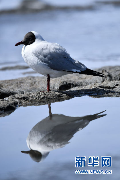 這是4月8日在青海省海北藏族自治州剛察縣青海湖畔拍攝的棕頭鷗。新華社發(fā)(潘彬彬 攝)