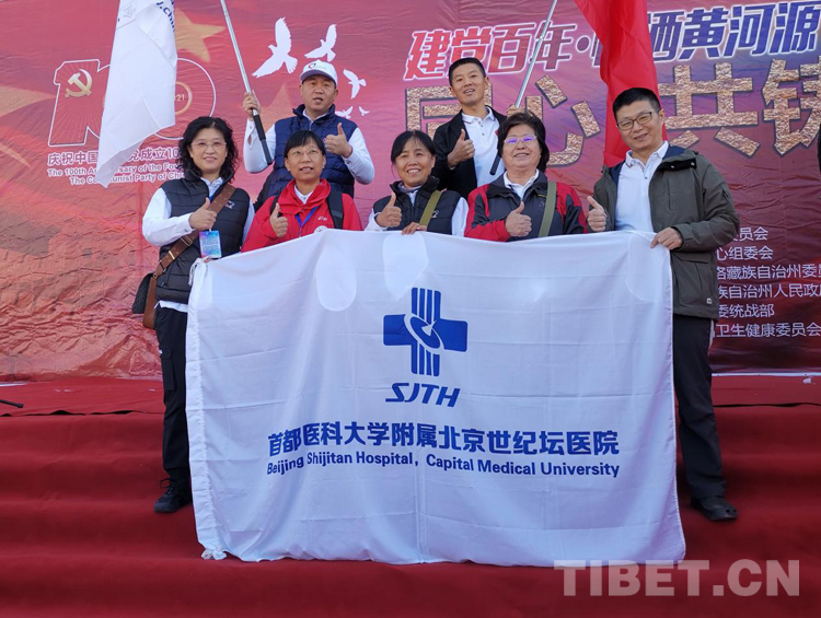 圖為“同心?共鑄中國(guó)心”青海果洛行啟動(dòng)儀式上,首都醫(yī)科大學(xué)附屬北京世紀(jì)壇醫(yī)院醫(yī)生合影 (組委會(huì)供圖)