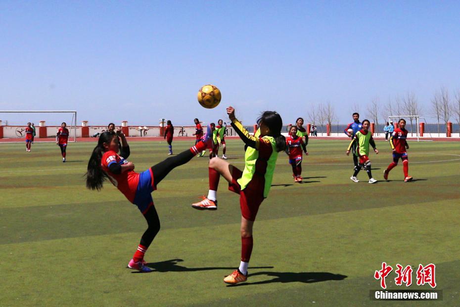 圖為女孩們?yōu)殛?duì)友進(jìn)球而歡呼。馬銘言 攝
