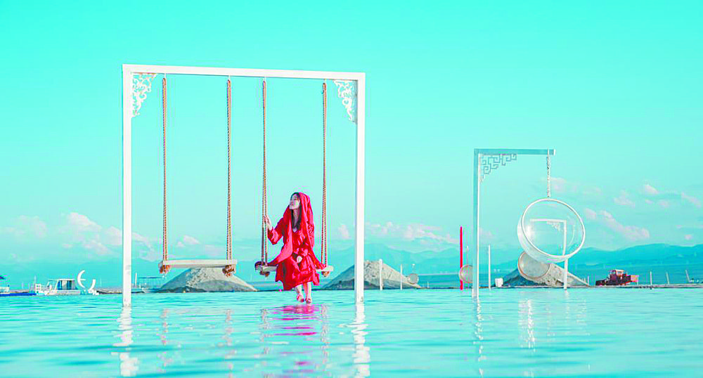 發(fā)表于網(wǎng)絡(luò)上的一組照片:平靜的湖面,清晰倒映著藍天、白云、山巒,還有擺出各種造型的人影;而夜景,浩瀚的銀河下,星空與湖面融為一色,夢幻而迷離。照片先是在朋友圈轉(zhuǎn)發(fā),繼而在各大平臺流傳,“流量”迅速集聚,讓茶卡鹽湖從一個制鹽企業(yè)“爆紅”成為熱門旅游景點,“天空之鏡”蜚聲國內(nèi)外。