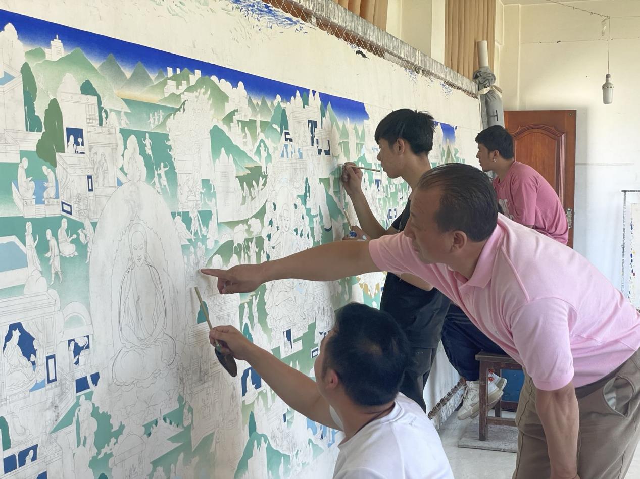 作為熱貢藝術(shù)(建筑彩繪)省級傳承人的更登,2007年3月成立黃南州更登熱貢藝術(shù)有限公司,先后培養(yǎng)了100多名優(yōu)秀的唐卡藝人,自公司成立以來累計培養(yǎng)學員410人,其中300余人現(xiàn)已成為熱貢藝人群體中的精英人才,公司助力200多戶脫貧戶增收致富。