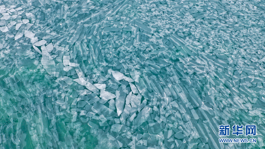 封凍的湖面如同破碎的“玉帶”,形成獨(dú)特的景觀。新華網(wǎng) 宋忠勇 攝