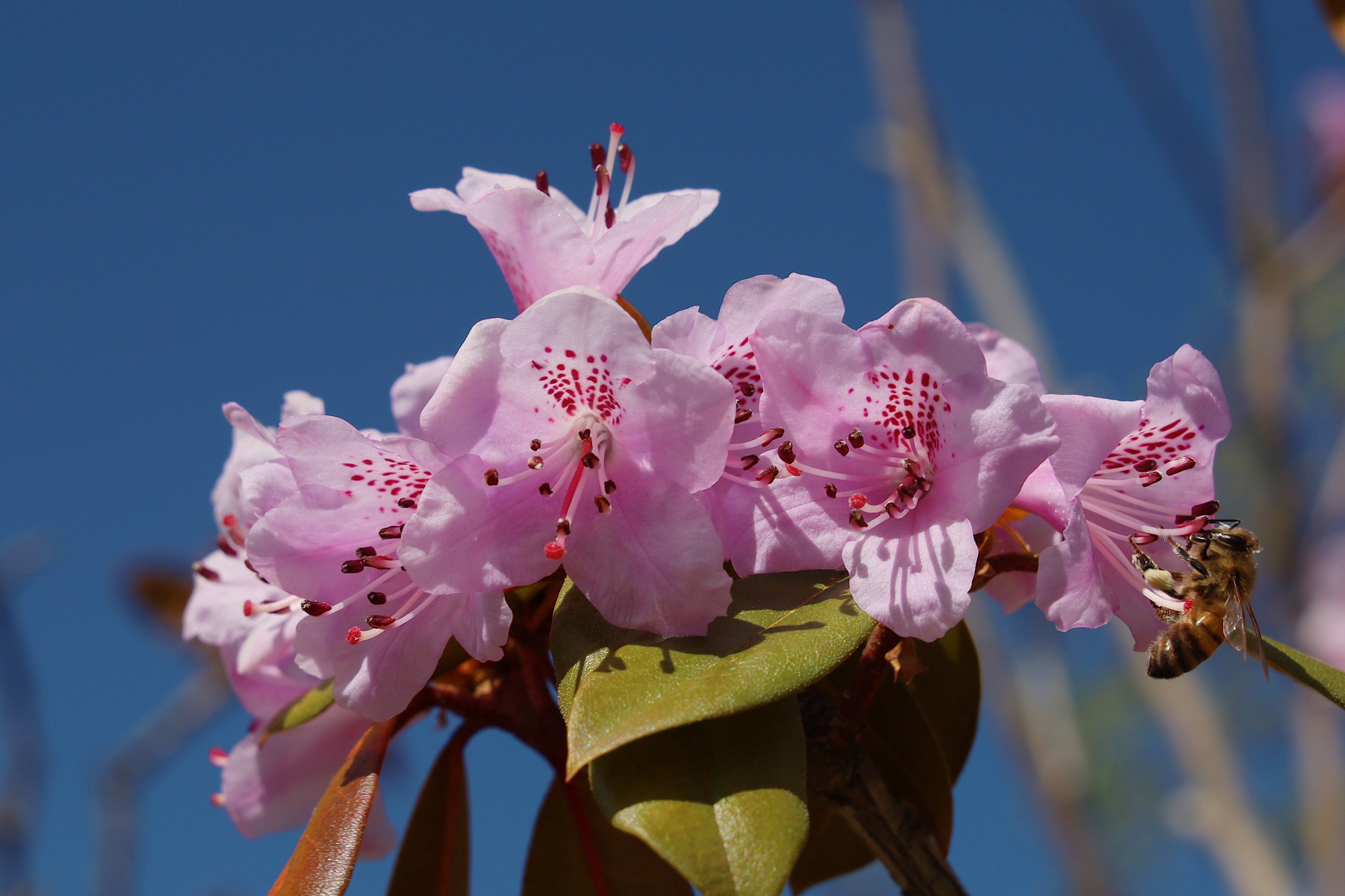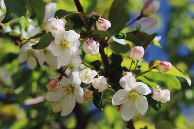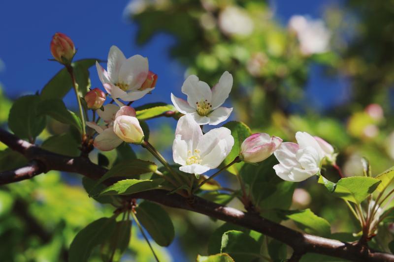 5月,香巴拉公園內(nèi)各色花卉競相開放,天藍(lán)更襯花紅,杜鵑花、海棠花、櫻桃李花在光影下變幻著不同的美。微風(fēng)輕拂,花色明亮,季節(jié)的故事在這一片片花色中演繹開來。