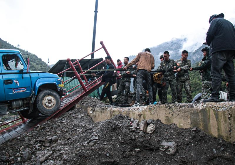 “同志,不要怕,我們是武警官兵,我們先給你處理傷口。” 甕云飛一邊安撫受傷群眾的情緒,一邊為他消毒止血、包扎傷口。后經(jīng)檢查,該群眾除了頭部有輕微皮外傷外,全身并無(wú)大礙。之后,中隊(duì)官兵又和當(dāng)?shù)厝罕娨黄鹜度胲囕v緊急救援,經(jīng)過(guò)幾個(gè)小時(shí)的努力,大家齊心協(xié)力將貨車拖至安全地帶。