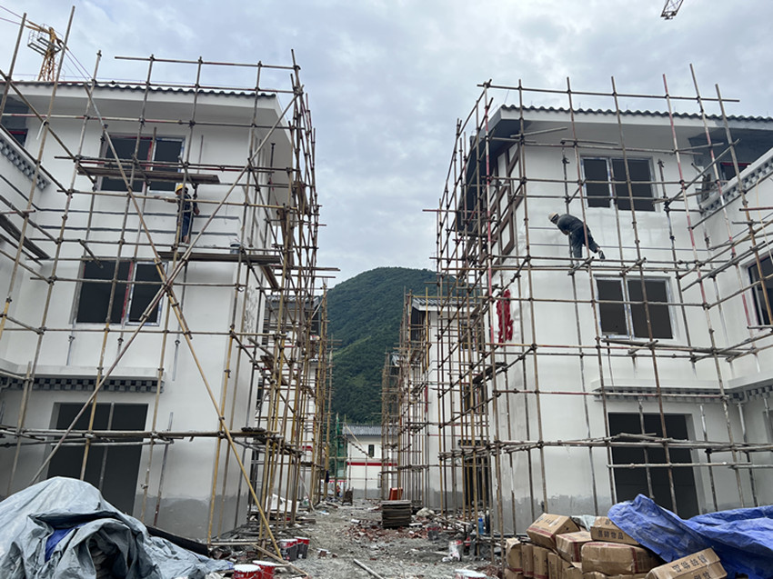 在德威鎮(zhèn)奎武村安置點,機器轟鳴、熱火朝天,工人們有的在噴外墻漆,有的在鋪設(shè)廣場地磚,大家各自忙著手中的活,齊心協(xié)力按下災(zāi)后重建的“加速鍵”,共繪美好家園“新畫卷”。