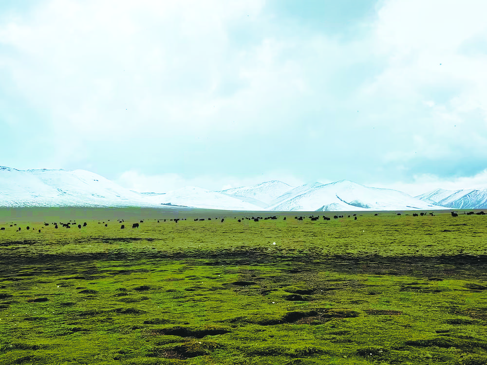 長江源頭,青海省玉樹藏族自治州治多縣,有一片遼闊的草場,成百上千的牛羊漫步于此,悠然自得的白唇鹿被人們精心飼養(yǎng)……