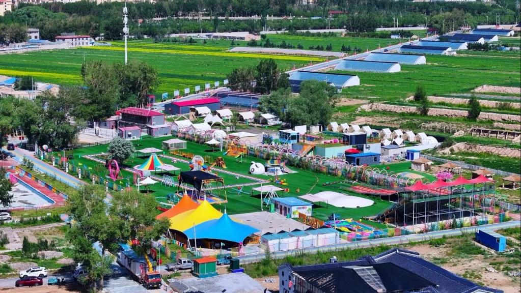 一條繽紛亮眼的“彩虹步道”從村口一直向里延伸,“彩虹步道”兩旁種滿了瓜果蔬菜,不遠處還有采摘體驗園和燒烤露營地,在青海省海西蒙古族藏族自治州德令哈市郊的紅光村,別樣的田園風情給烈日炎炎下的德令哈增加了一絲清爽。