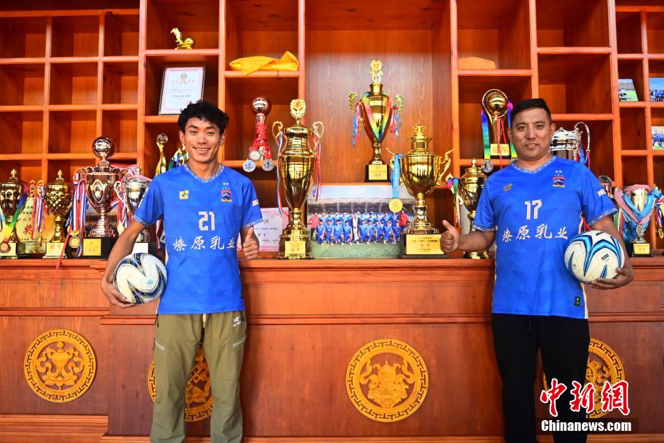 10月15日,在甘肅省甘南藏族自治州合作市一足球場內(nèi),隊員更高才讓(左)進(jìn)行訓(xùn)練。更高才讓是當(dāng)?shù)啬撩?,曾拿到甘肅省運會足球賽最佳射手,他表示自己在足協(xié)杯用體力優(yōu)勢彌補(bǔ)了球技不足,因為此前在深山牧區(qū)放牛坡度太陡無法騎馬只能徒步,所以每天近20公里的放牧生活造就了他的體力優(yōu)勢。
